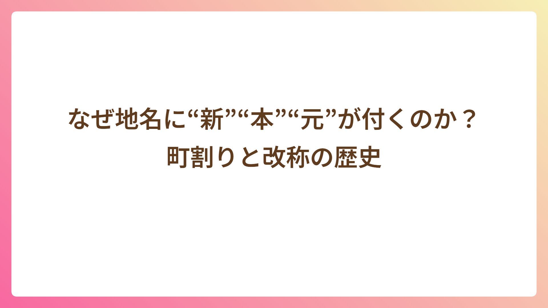 なぜ地名に“新”“本”“元”が付くのか?町割りと改称の歴史