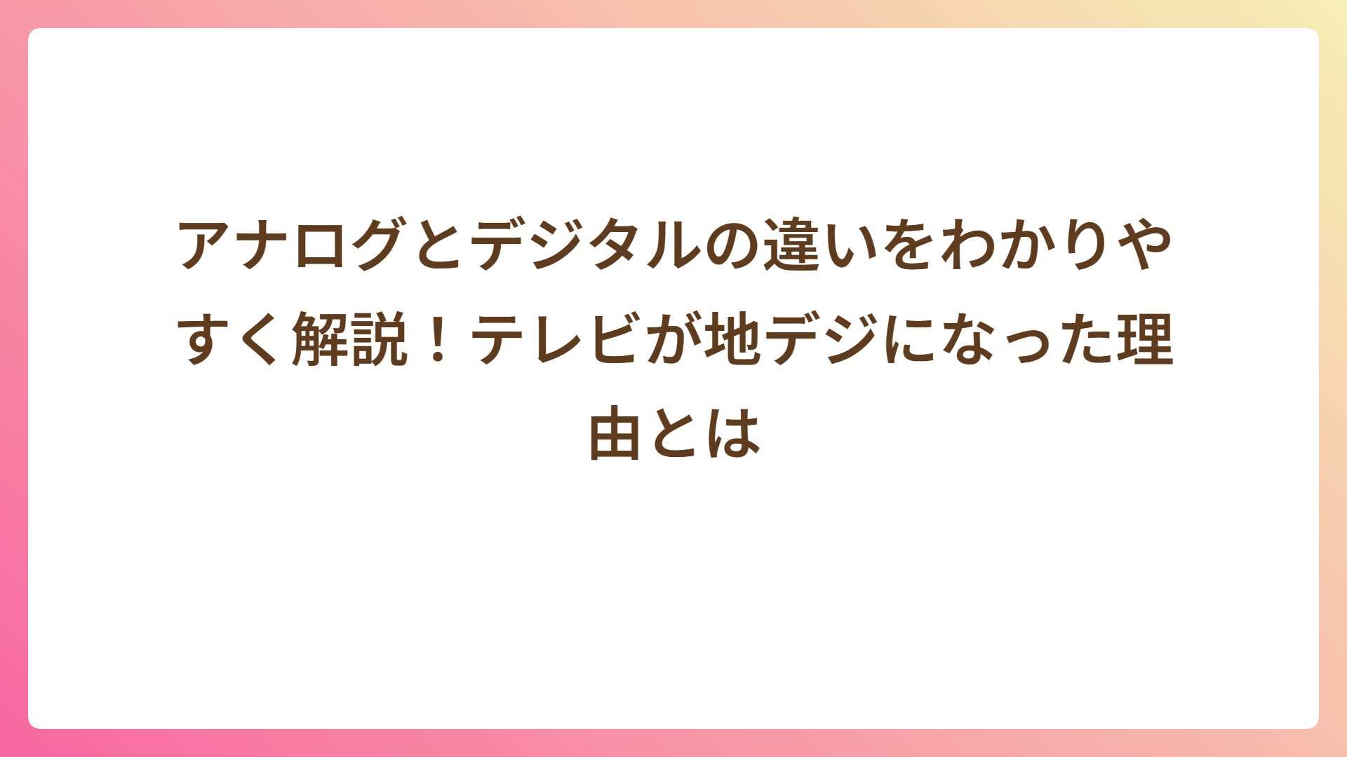 アナログとデジタルの違いをわかりやすく解説!テレビが地デジになった理由とは