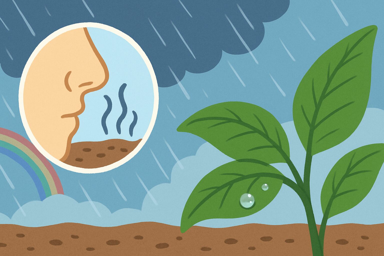 雨が降ると水滴の衝撃でジオスミンが空気中に放たれ、人間の嗅覚が非常に敏感に反応します。