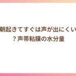 朝起きて声が出にくいのは、寝ている間に乾燥した声帯粘膜の水分不足が原因です。