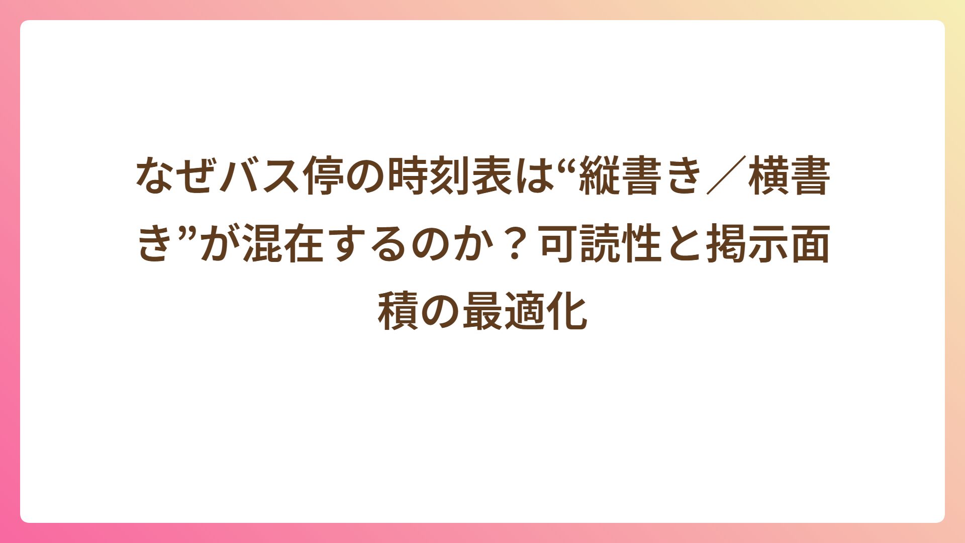 なぜバス停の時刻表は“縦書き/横書き”が混在するのか?可読性と掲示面積の最適化