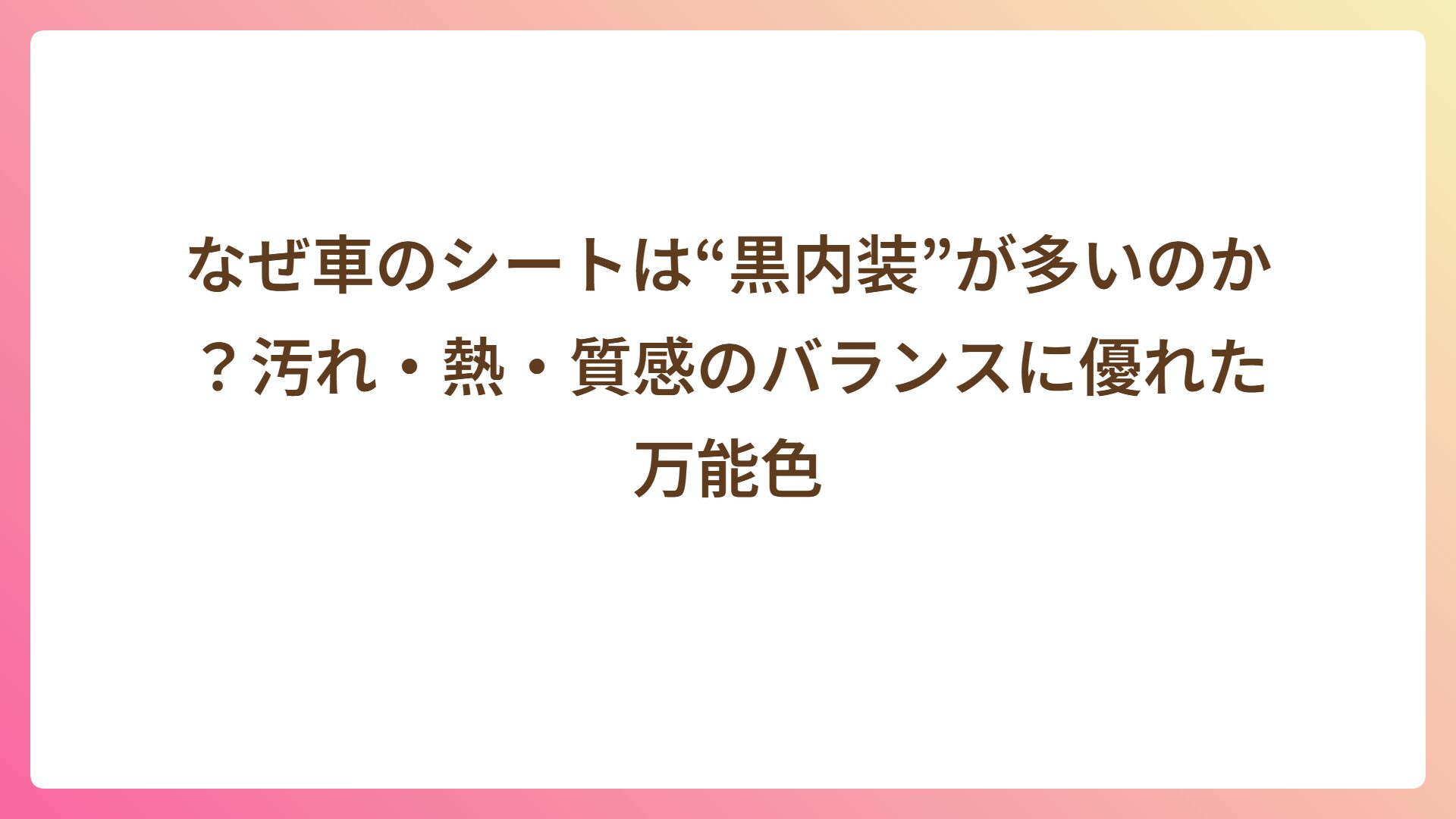 なぜ車のシートは“黒内装”が多いのか?汚れ・熱・質感のバランスに優れた万能色