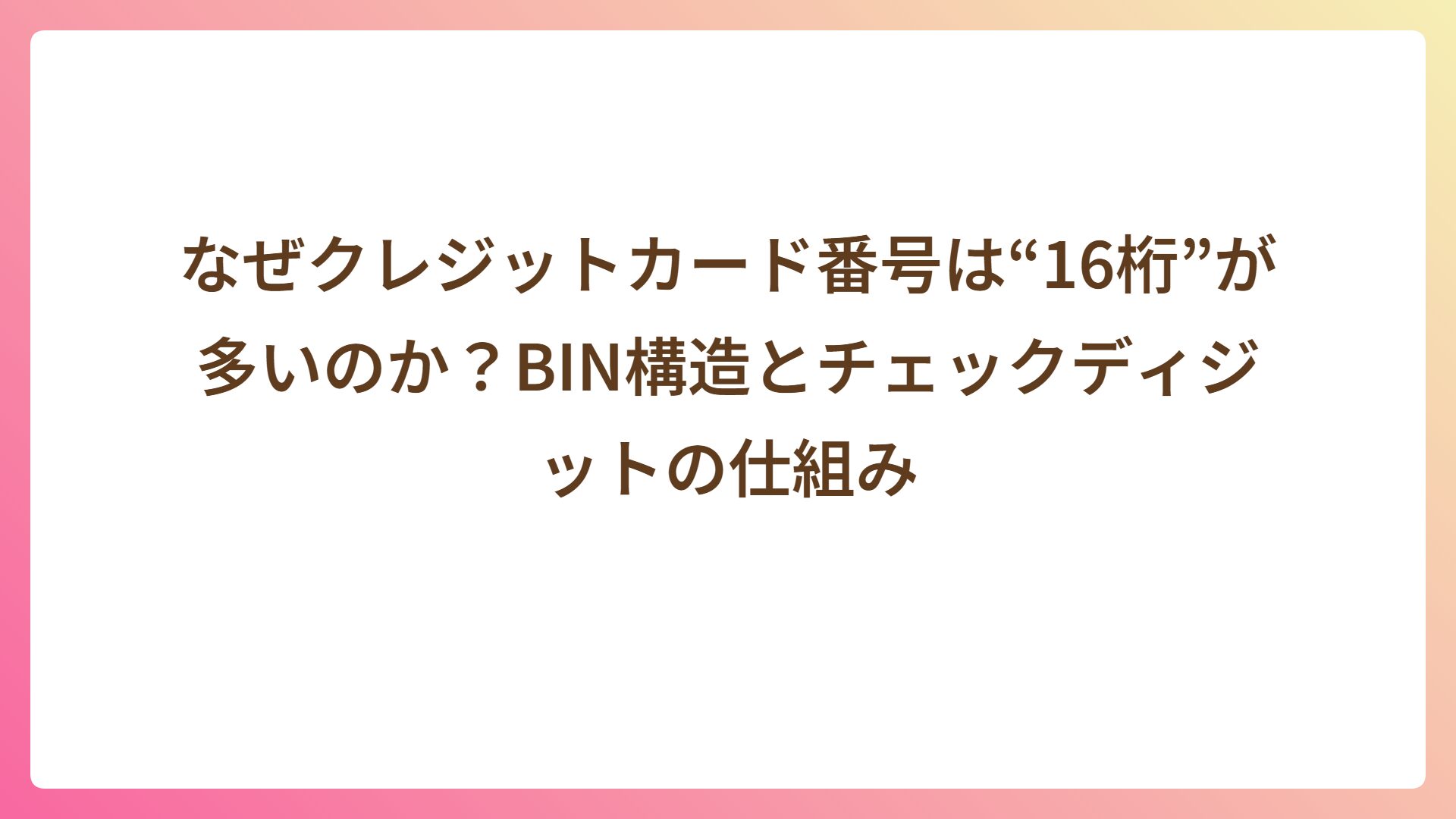 この記事では、クレジットカード番号が16桁である理由と、その裏にあるBIN・チェックディジットの仕組みを解説します。