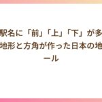 今回は、「前」「上」「下」が駅名や地名に多い理由を、地形と文化の両面から読み解きます。