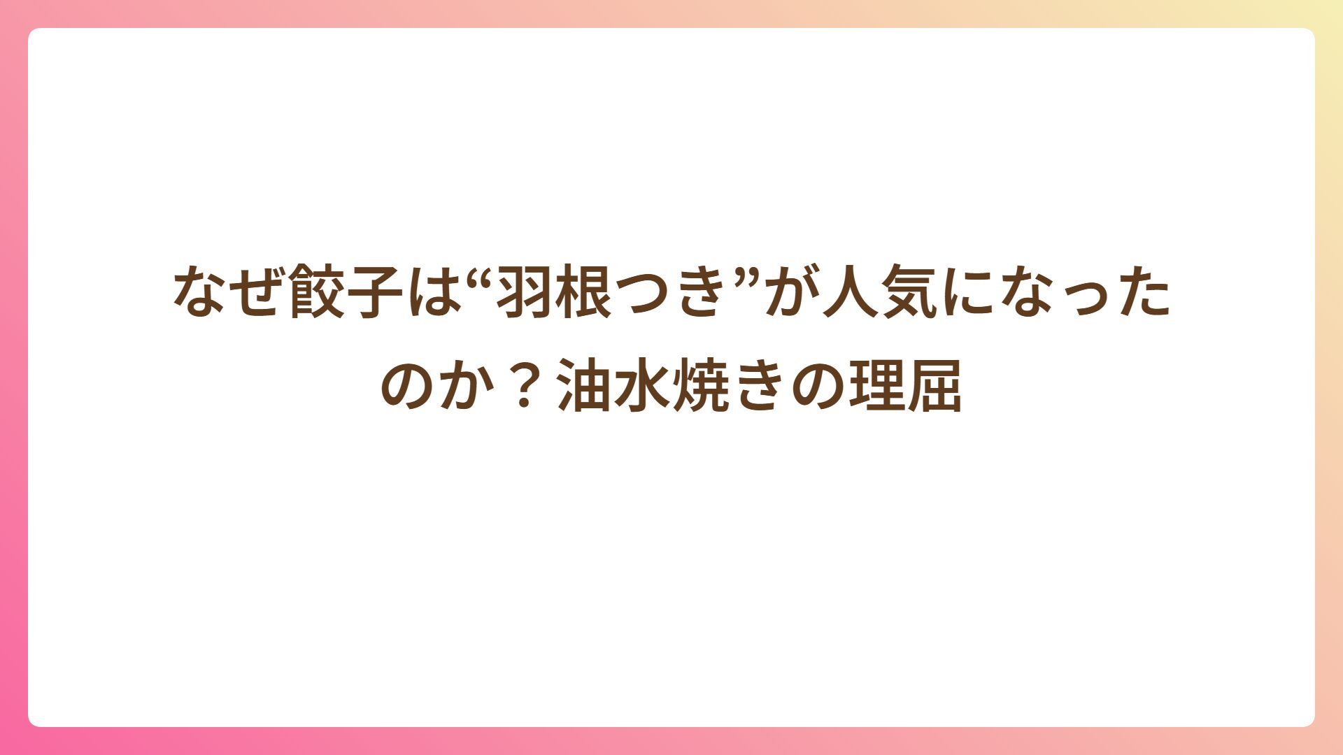 なぜ餃子は“羽根つき”が人気になったのか?油水焼きの理屈