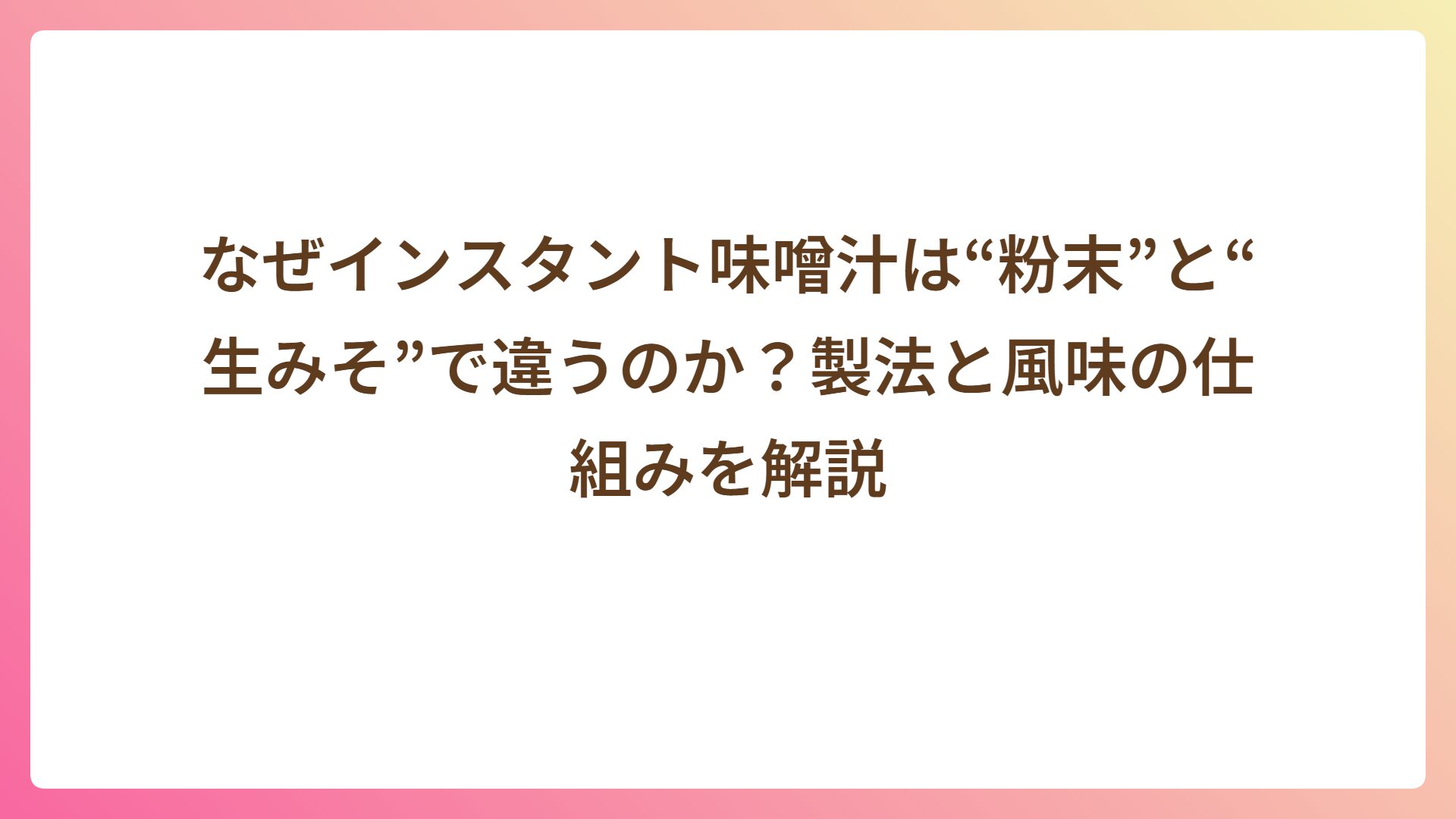 なぜインスタント味噌汁は“粉末”と“生みそ”で違うのか?製法と風味の仕組みを解説