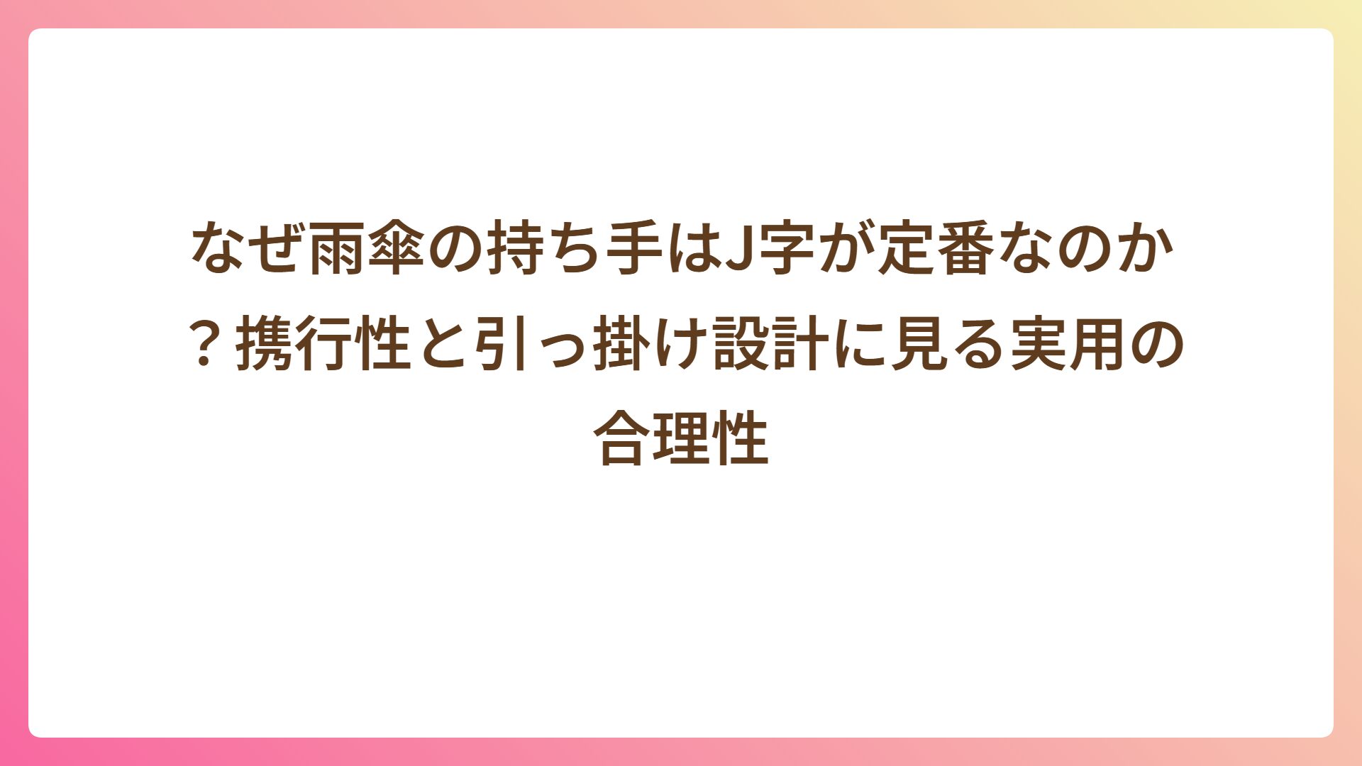この記事では、雨傘の持ち手がJ字である理由を、構造・使い勝手・社会的背景から解説します。