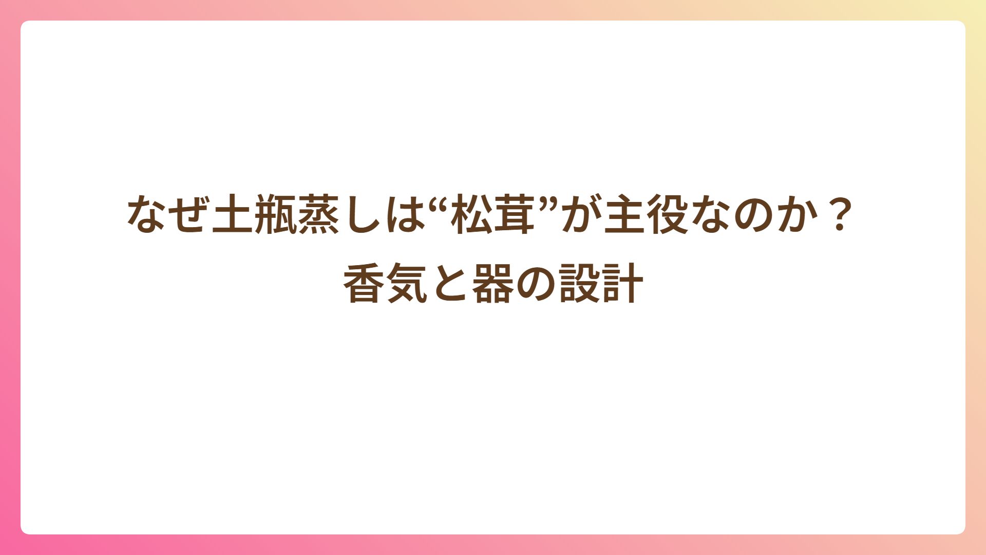 なぜ土瓶蒸しは“松茸”が主役なのか?香気と器の設計