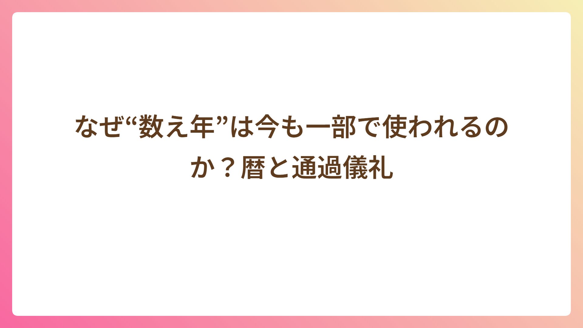まとめ:数え年は“暦で生きる文化”の名残