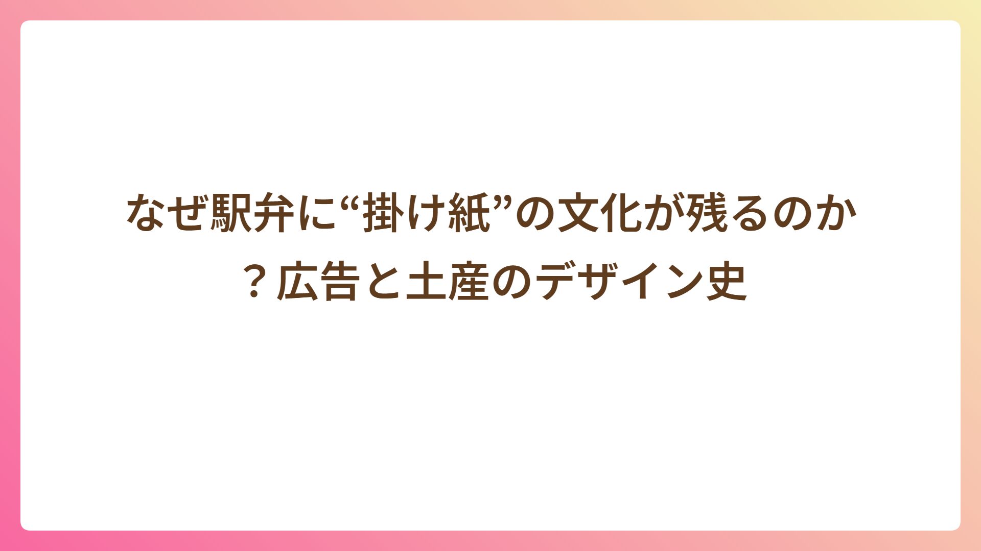 なぜ駅弁に“掛け紙”の文化が残るのか?広告と土産のデザイン史