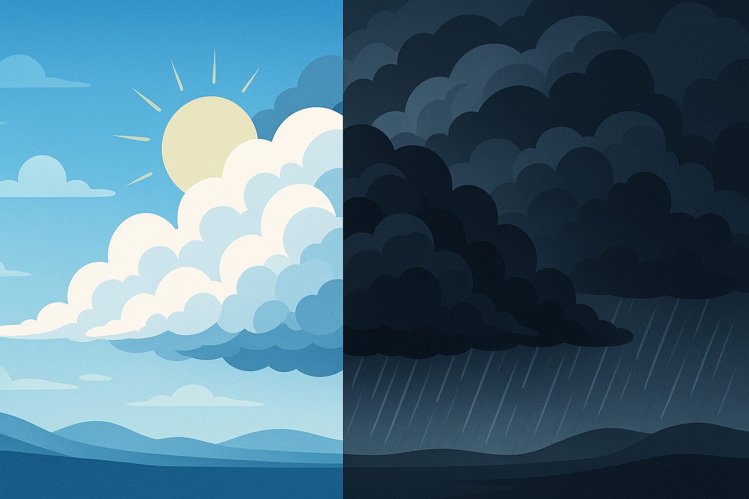 雨雲が黒いのは気象の不思議というより、光の物理的な性質によるものです。もし「白い雲が見たい」と思ったら、横や上からの角度で眺めてみると印象が変わるかもしれません。