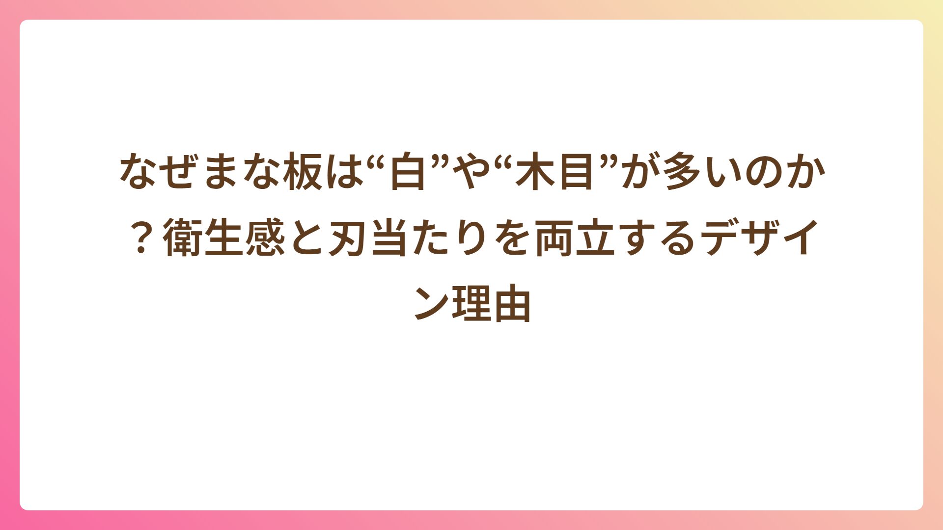 なぜまな板は“白”や“木目”が多いのでしょうか?