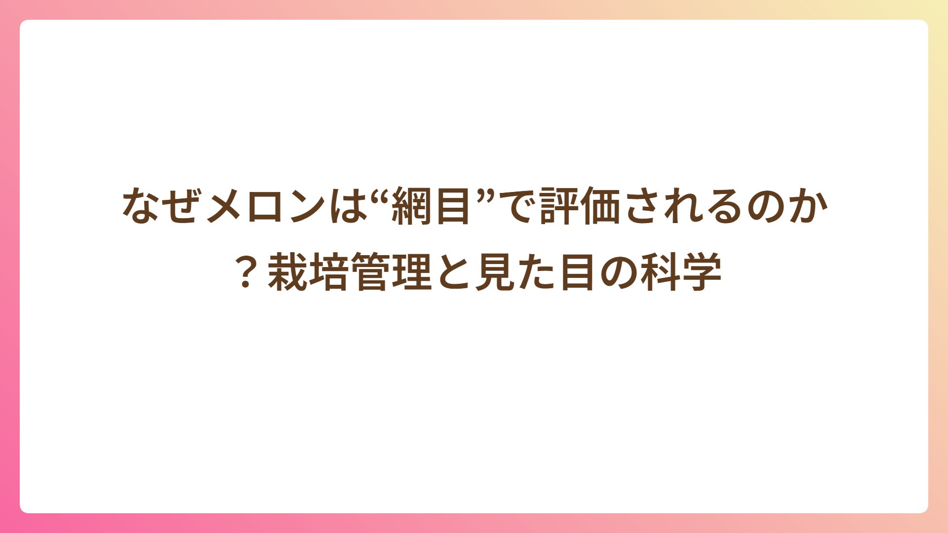 なぜメロンは“網目”で評価されるのか?栽培管理と見た目の科学