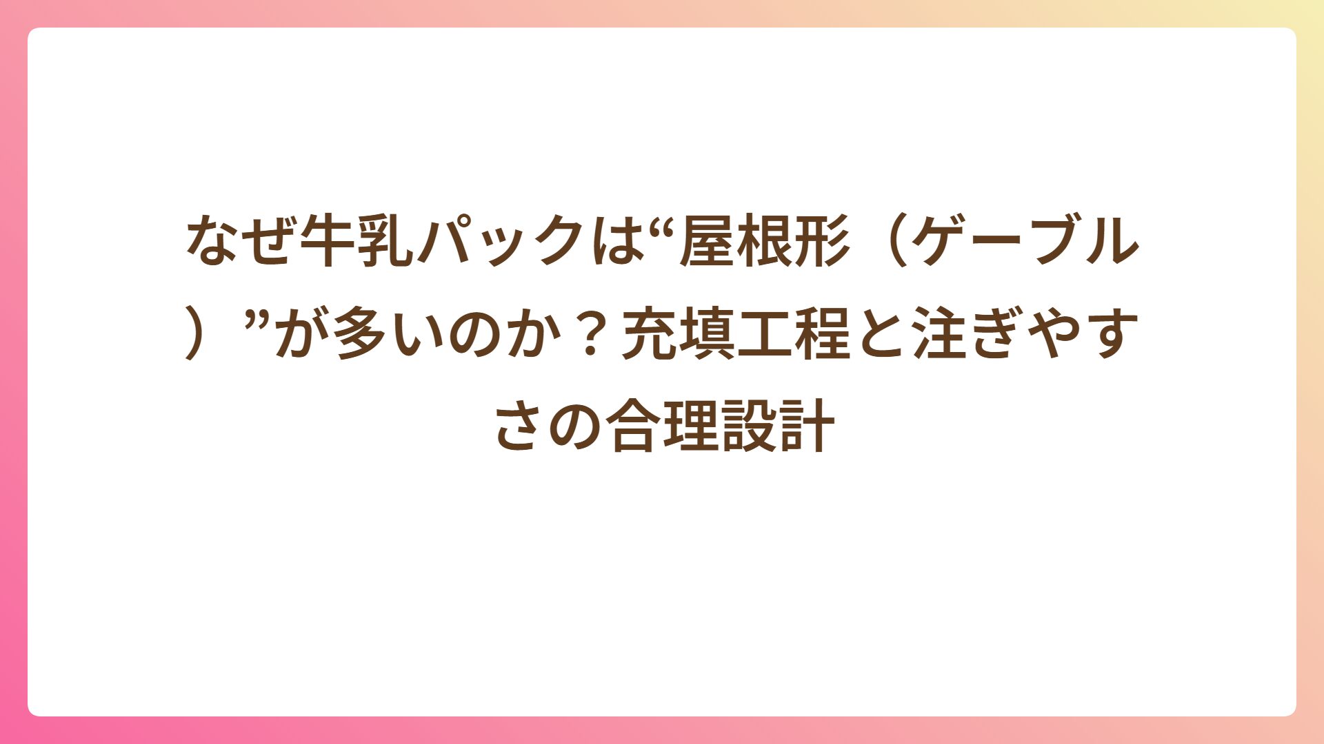 なぜ牛乳パックは“屋根形(ゲーブル)”が多いのか?充填工程と注ぎやすさの合理設計