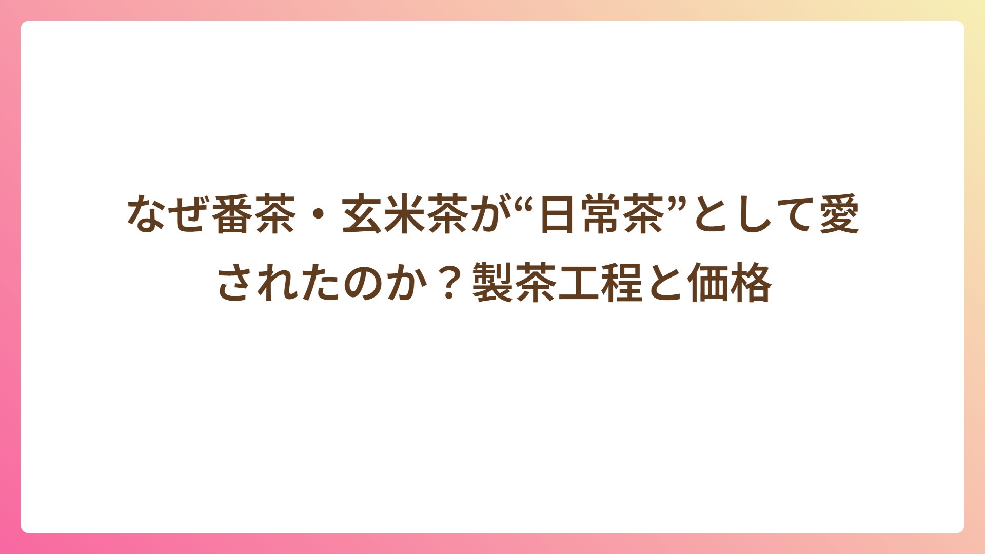 なぜ番茶・玄米茶が“日常茶”として愛されたのか?製茶工程と価格