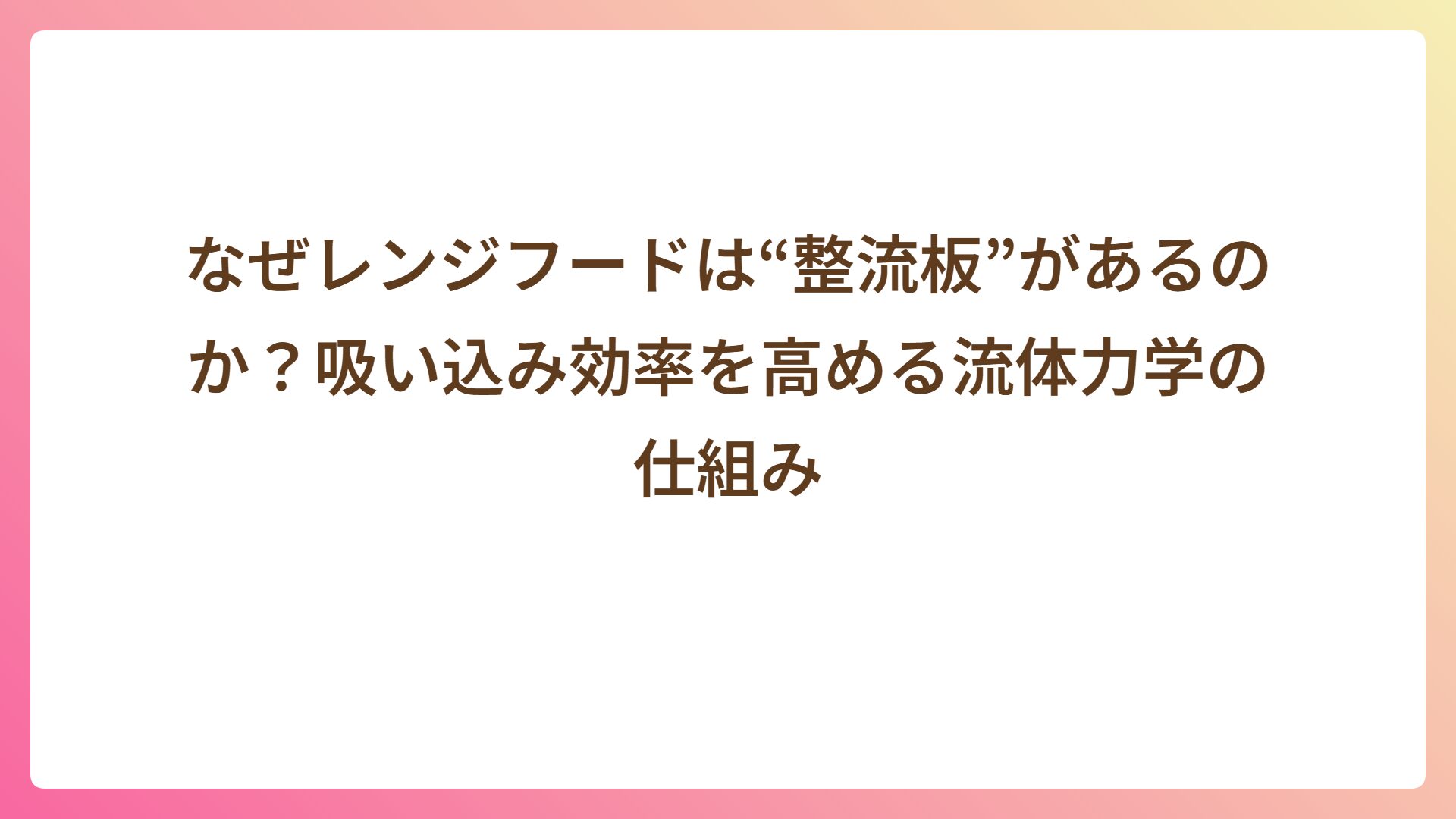 なぜレンジフードは“整流板”があるのか?吸い込み効率を高める流体力学の仕組み