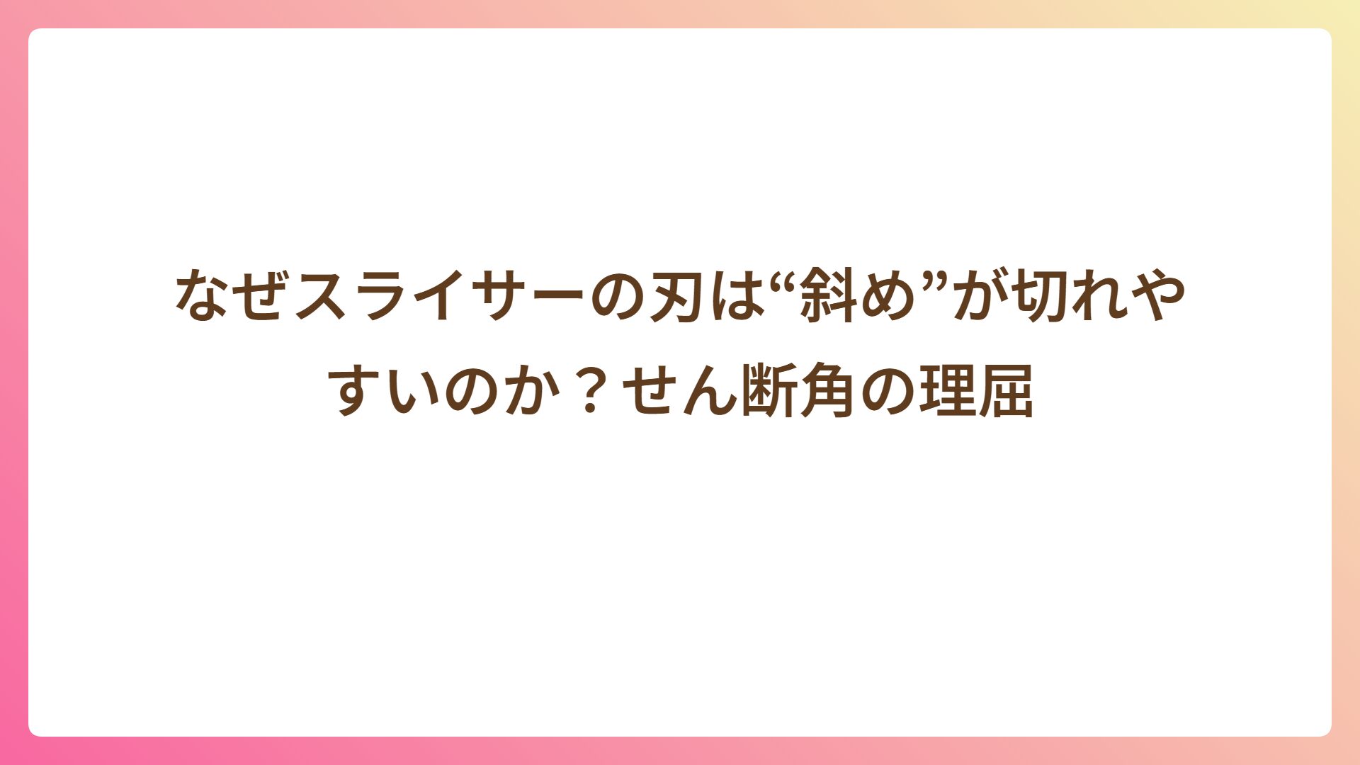 なぜスライサーの刃は“斜め”が切れやすいのか?せん断角の理屈