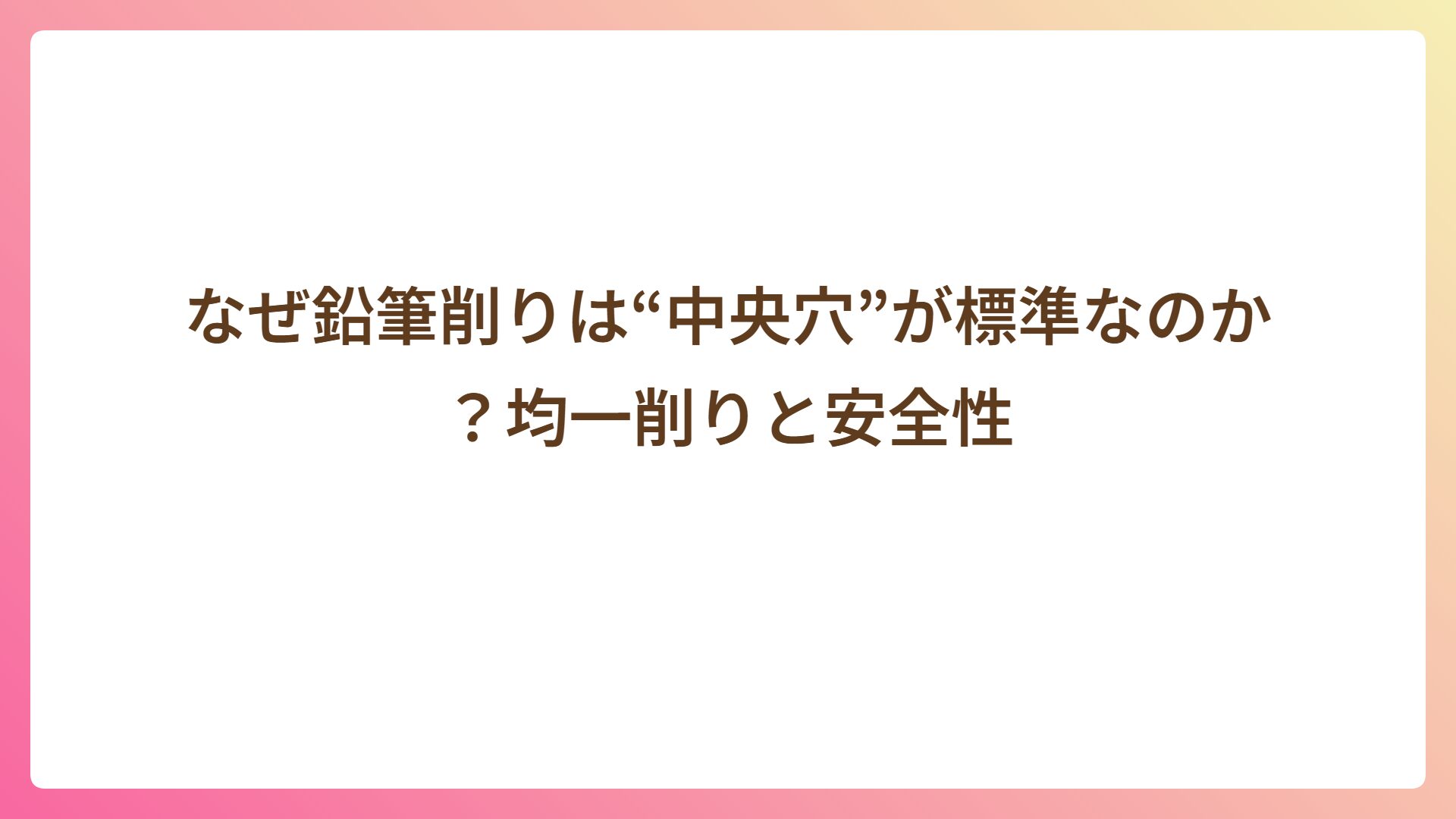 なぜ鉛筆削りは“中央穴”が標準なのか?均一削りと安全性