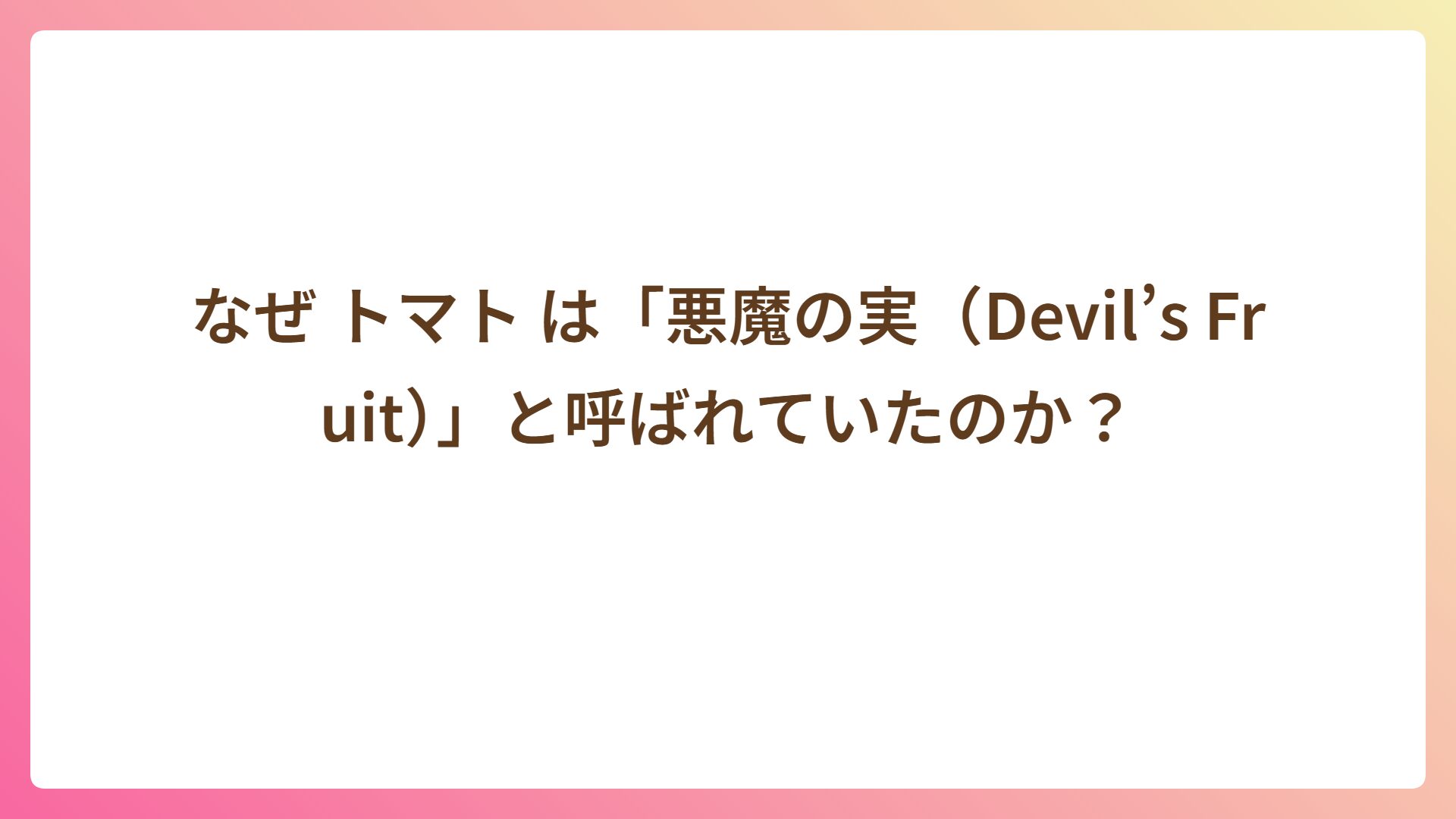 トマトが「悪魔の実」と呼ばれたのは、単なる誇張ではなく、当時の植物分類・食器材質・文化的信仰が背景にあった「合理的な恐れ」でもありました。